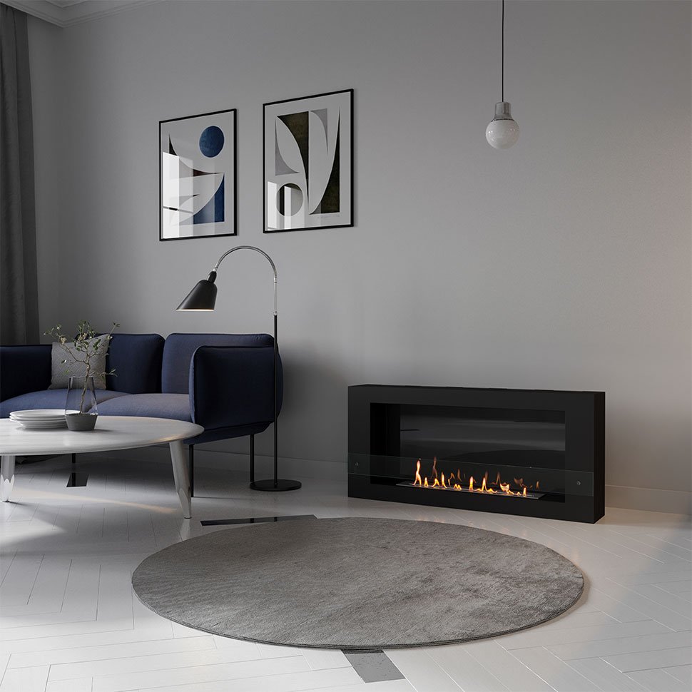 Биокамин SteelHeat WALL LONG 1200 черный, стемалит