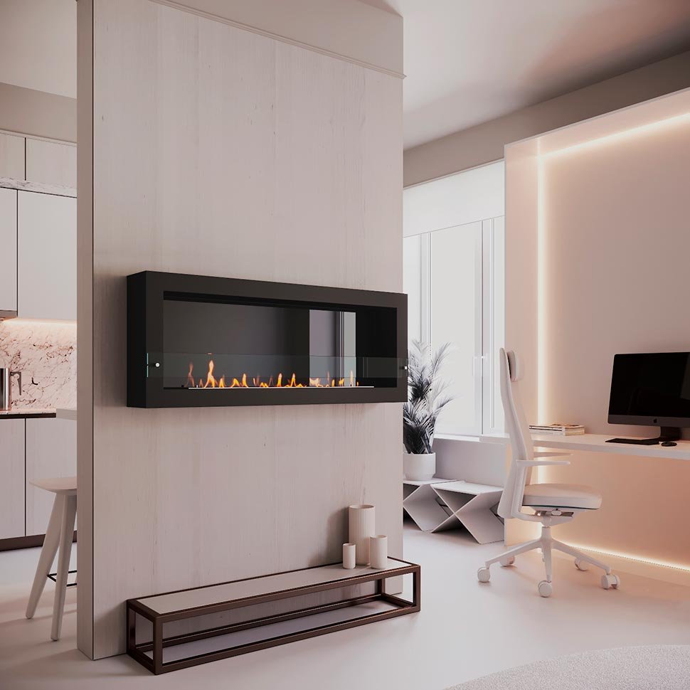 Биокамин SteelHeat WALL ONE 1400 черный, стекло