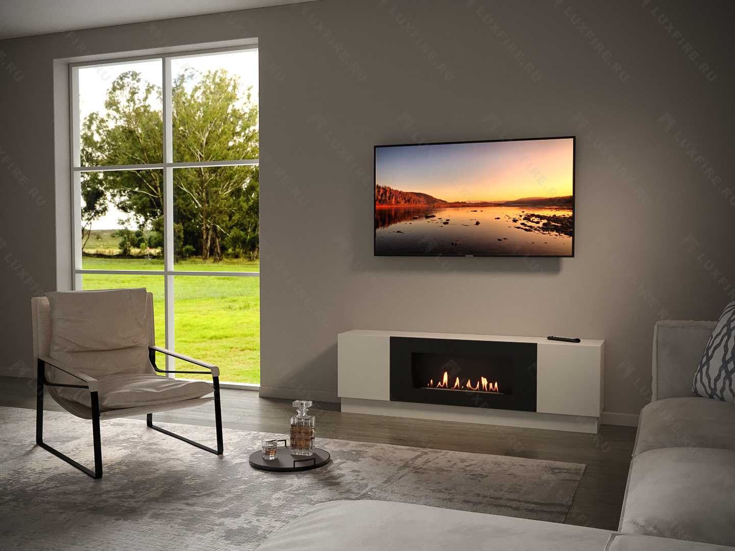 Тумба универсальная Lux Fire "Байкал" 1600, белый, с биокамином 900